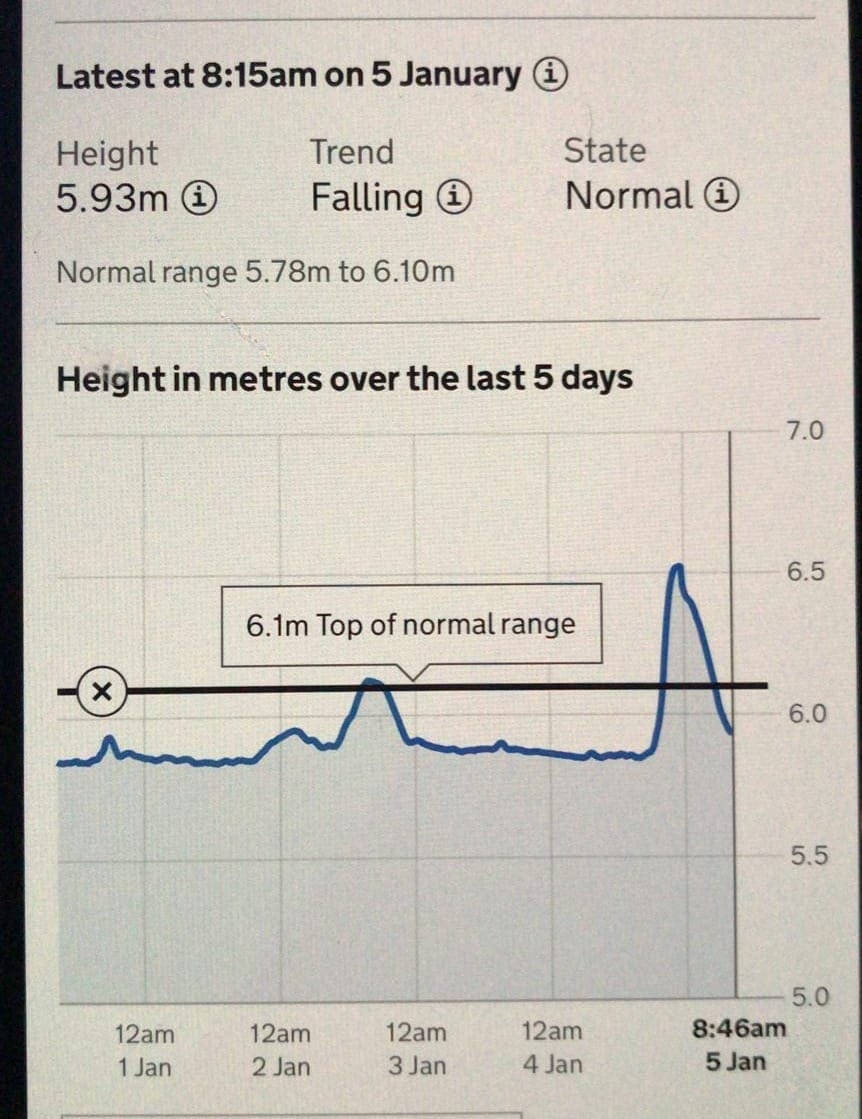 We heard that the reason the flood was so bad, the water level the highest it had even been, was because the Canal and River Trust hadn’t opened the gates at the weir lower down the river, which would have let the water out into the flood relief channel. Apparently the CRT hadn’t fixed a broken gate and it was stuck shut.